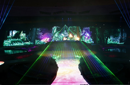 今年的《鸟巢吸引》在提升视觉震撼力的同时,也精心打造了现场声效,为现场观众制作了超巨型电影的立体声效果。国内独有、横截宽度100米、纵深长度150米的13声道立体环绕声系统,可通过纵深和能量分布来把声音辐射至观众席。该系统不仅能通过不同音效组合营造气氛,烘托观众浩瀚宏达的空间感,环境感,还能利用飞越过渡形式,使疾驰汽车的飞跃、宇宙飞船的航行等特定的声音沿着前后的纵深方向移动,令观众仿若身临其境。