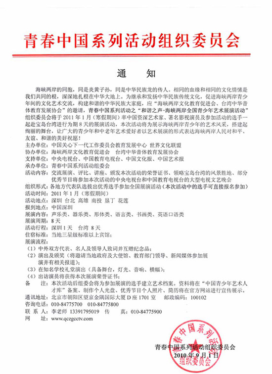 和谐之声•2011海峡两岸全国青少年艺术展演活动宣传画册