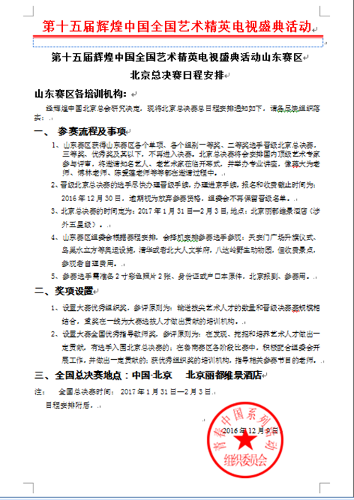 第十五届辉煌中国山东赛区--济宁站获奖名单(四)