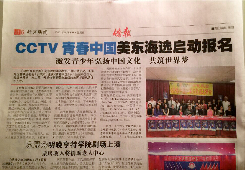 【CCTV中央电视台《青春中国》美东地区海选新闻发布会于2015年5月7日在纽约隆重举行】